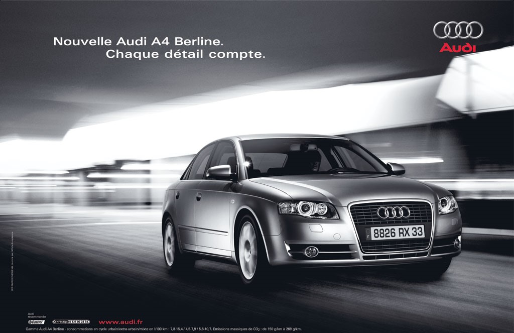 Enfin, pour ajouter un détail curieux à notre petite saga sur la musique dans la pub automobile, un visuel d’une version ultérieure de l’Audi A4 affichera aussi une certaine ressemblance avec le concept de la campagne Renault 18 des années 80.